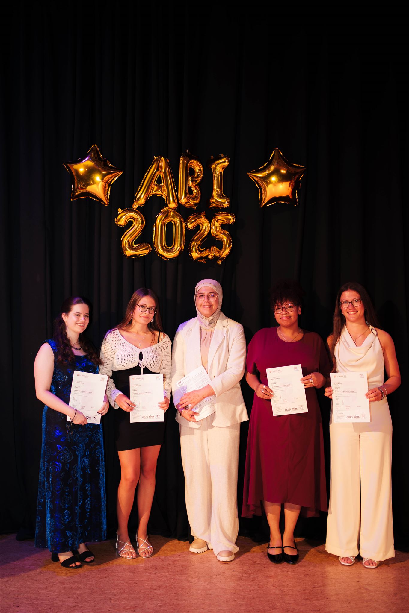 Überreicht wurden außerdem fünf Bescheinigungen über das bestandene Cambridge Zertifikat. Besonders hervorzuheben sind dabei Carolina Bode, Celina Ernst und Paula Komp, die sogar das höchste Sprachniveau C2 erreichten und somit nahezu muttersprachliche Englischkenntnisse unter Beweis stellten. Lujane al-Rabi’i und Ronja Wiesner erlangten das Niveau C1.