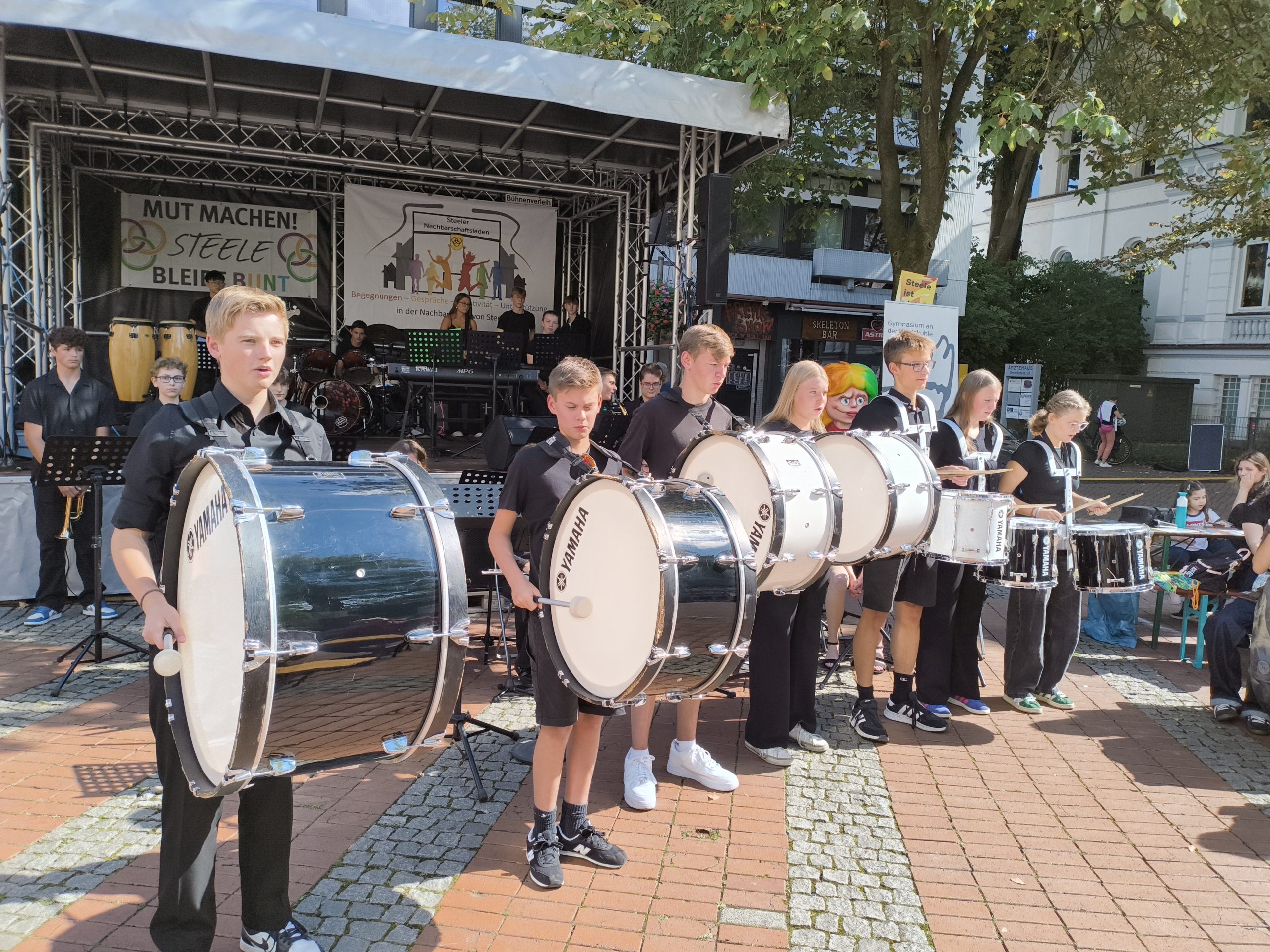 Die Teilnahme unserer Schule passte in besonderer Weise zu den Zielen der Veranstaltung. Das Motto „Miteinander. Leben. Lernen.“ beschreibt genau das, wofür auch „Steele bleibt bunt“ steht: respektvolles Zusammenleben, gemeinsames Gestalten und gegenseitige Unterstützung – Werte, die auf und vor der Bühne spürbar waren.