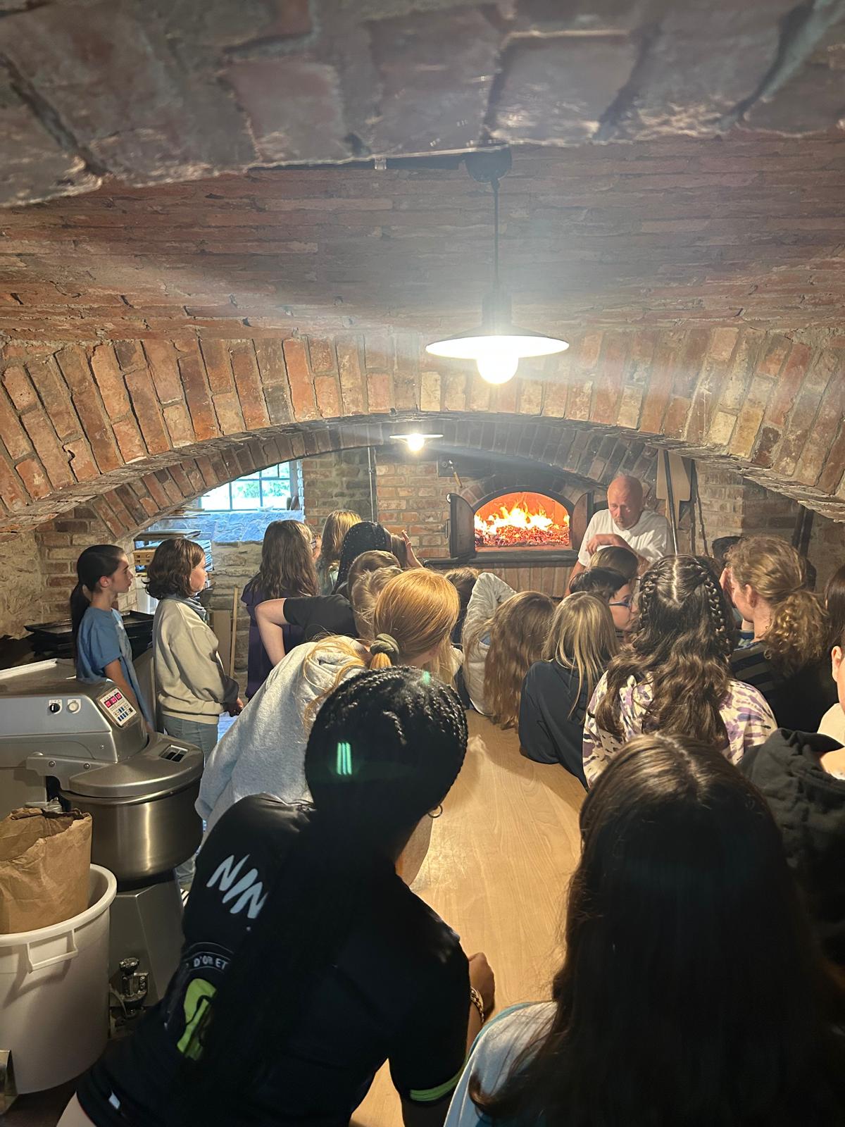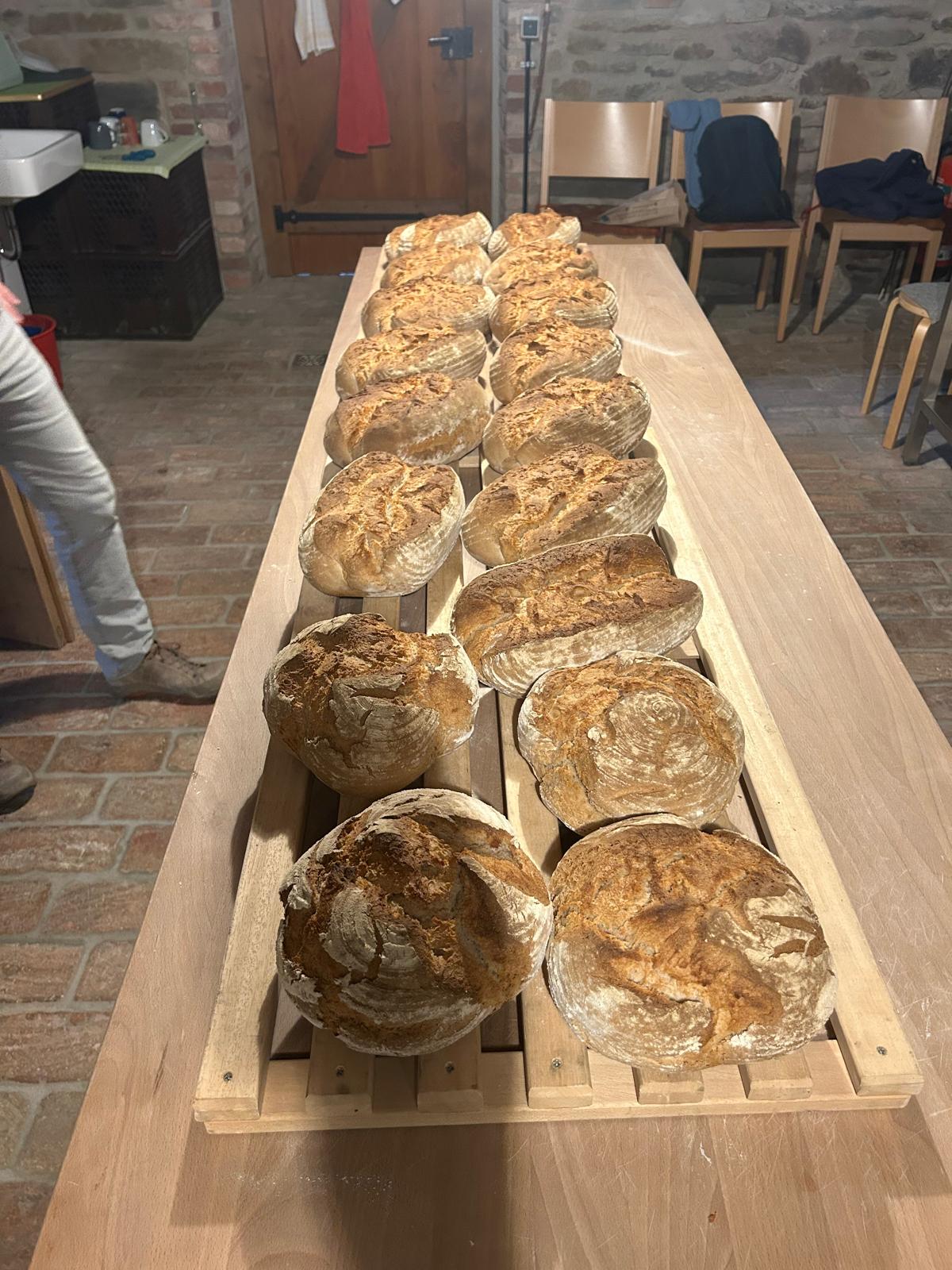 On Tuesday we had our first workshop: we built a small half-timbered house (a Fachwerkhaus). We worked in four groups and had to follow the plan very carefully. Sometimes we made mistakes and had to rebuild parts, but finally the house was finished and looked really good! In the evening Ansgar – the baker – baked pizza with us in the really old oven in the cellar of the farmhouse. The pizza was super yummy! Ansgar also still baked bread for us – 12 loaves!