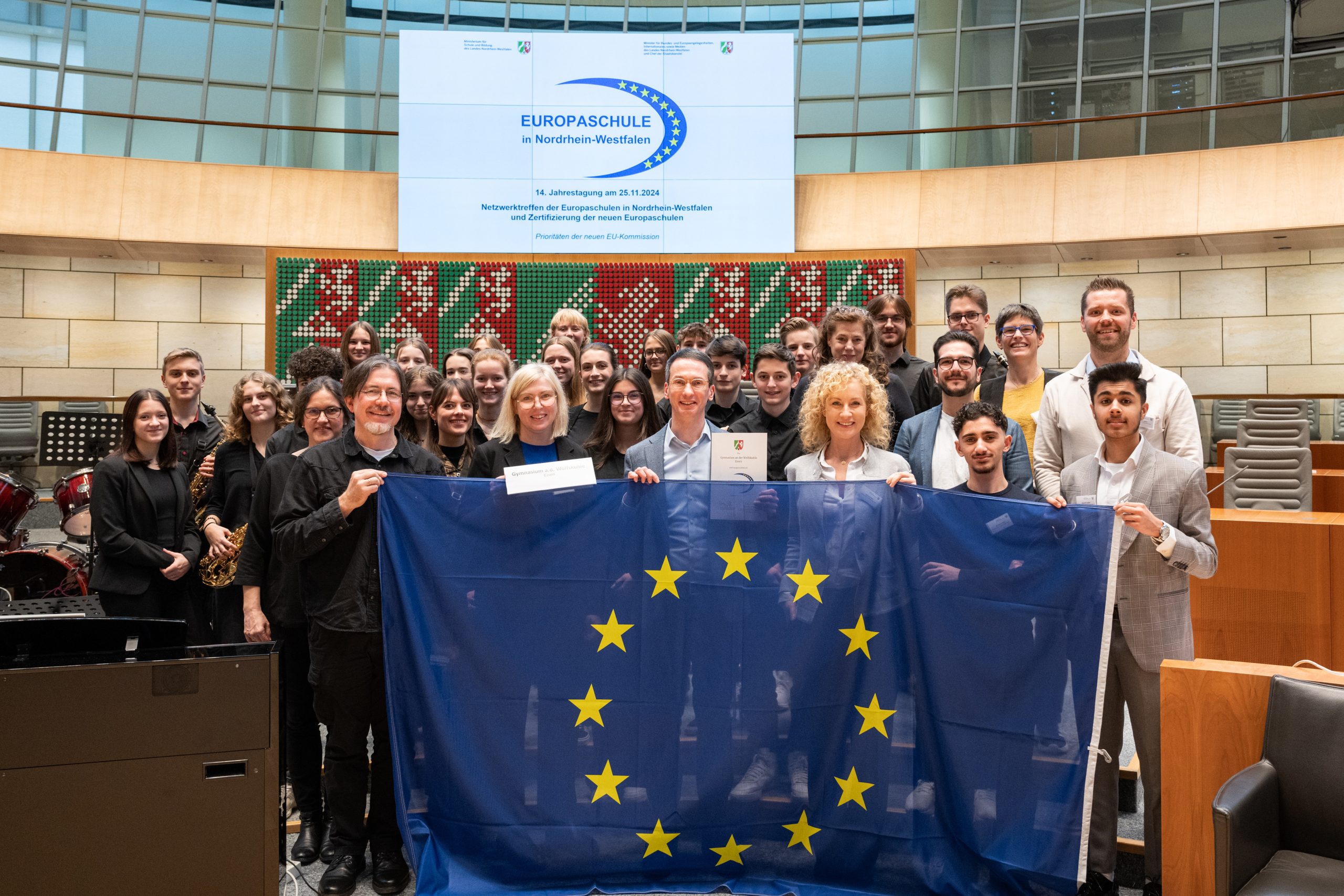 Mit großer Freude dürfen wir verkünden, dass wir am 25. November 2024 offiziell als „Europaschule in Nordrhein-Westfalen“ ausgezeichnet wurden. Nach einem umfangreichen Zertifizierungsprozess gehören wir nun zu den 255 Schulen in NRW, die dieses besondere Prädikat tragen.